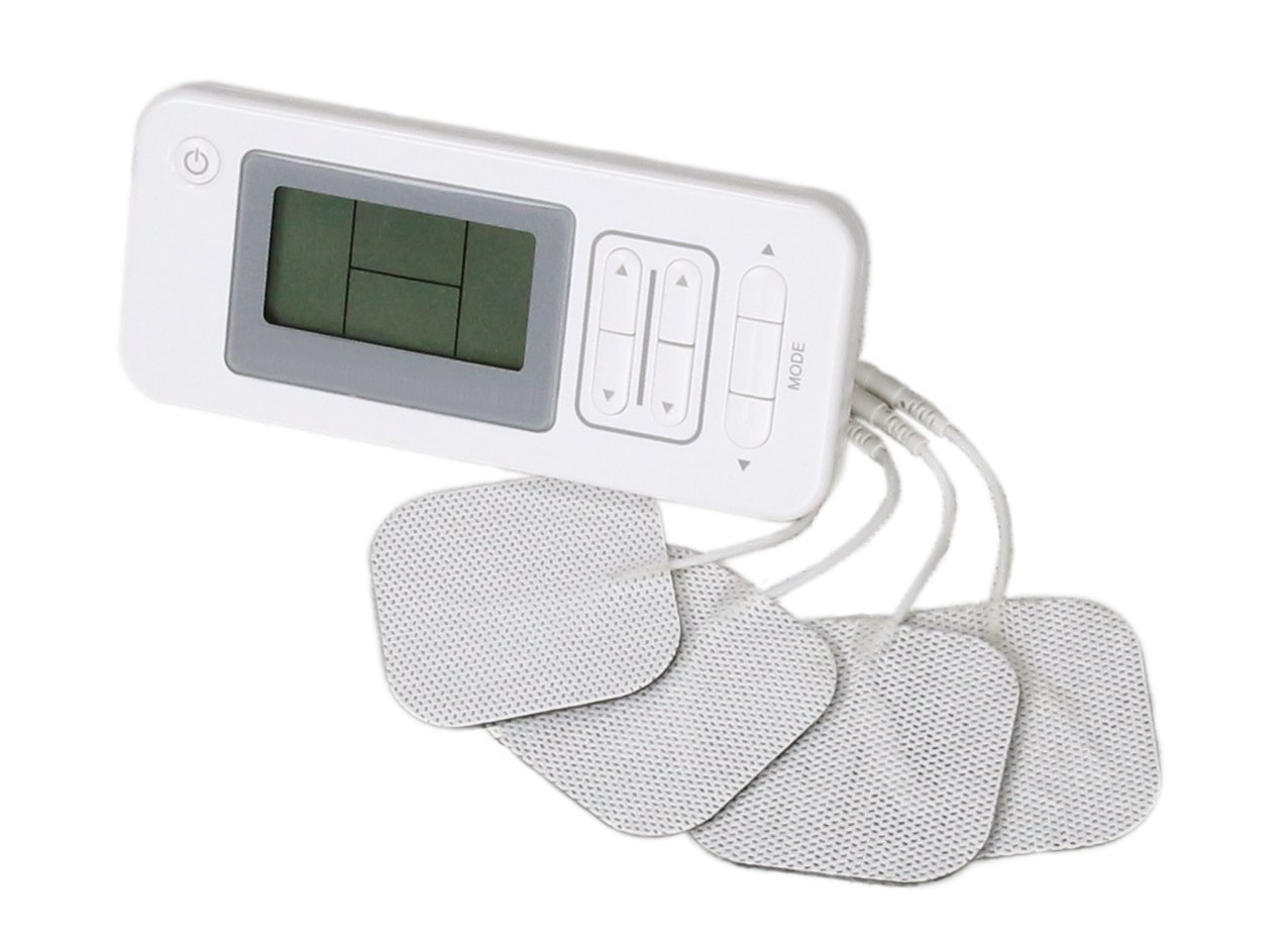 – 4 electrodes s’attachent à toutes les parties du corps ( poignet, main, taille, épaule, coude , dos , cuisse, genoux, jambe etc…)