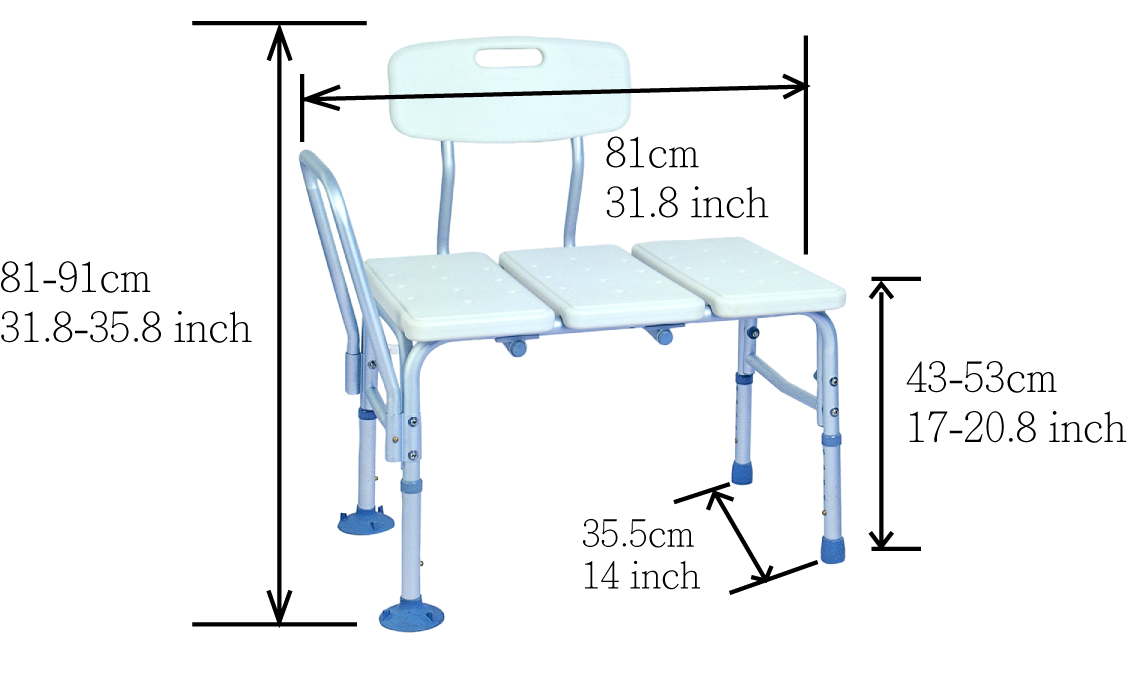 MU-5750 Chaise de douche non glissante, banc de transfert Siège de bain avec dossier, pour personnes âgées, handicapé invalide bariatrique ou individu avec une force de dos limité ou un équilibre limitée