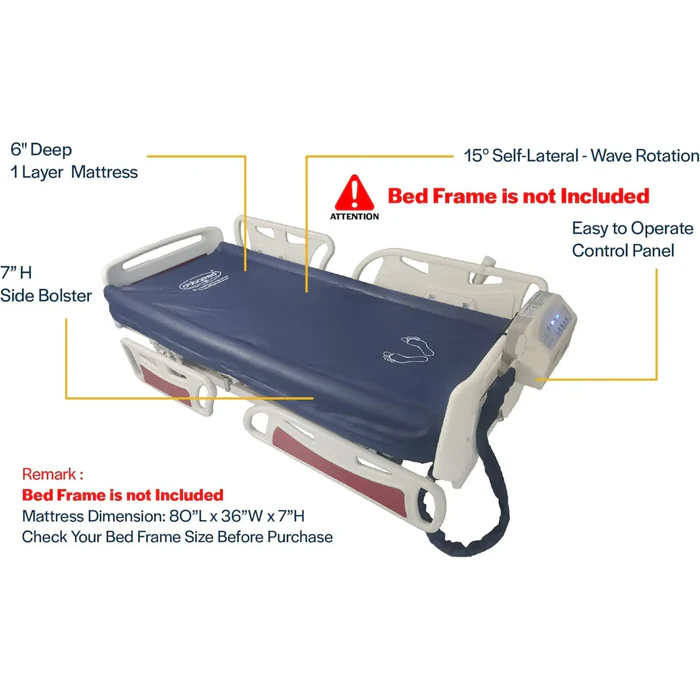 Specialized air cells gently inflate and deflate to create a 15° wave-like motion that redistributes pressure, improves circulation, enhances sleep quality, and helps prevent bedsores.